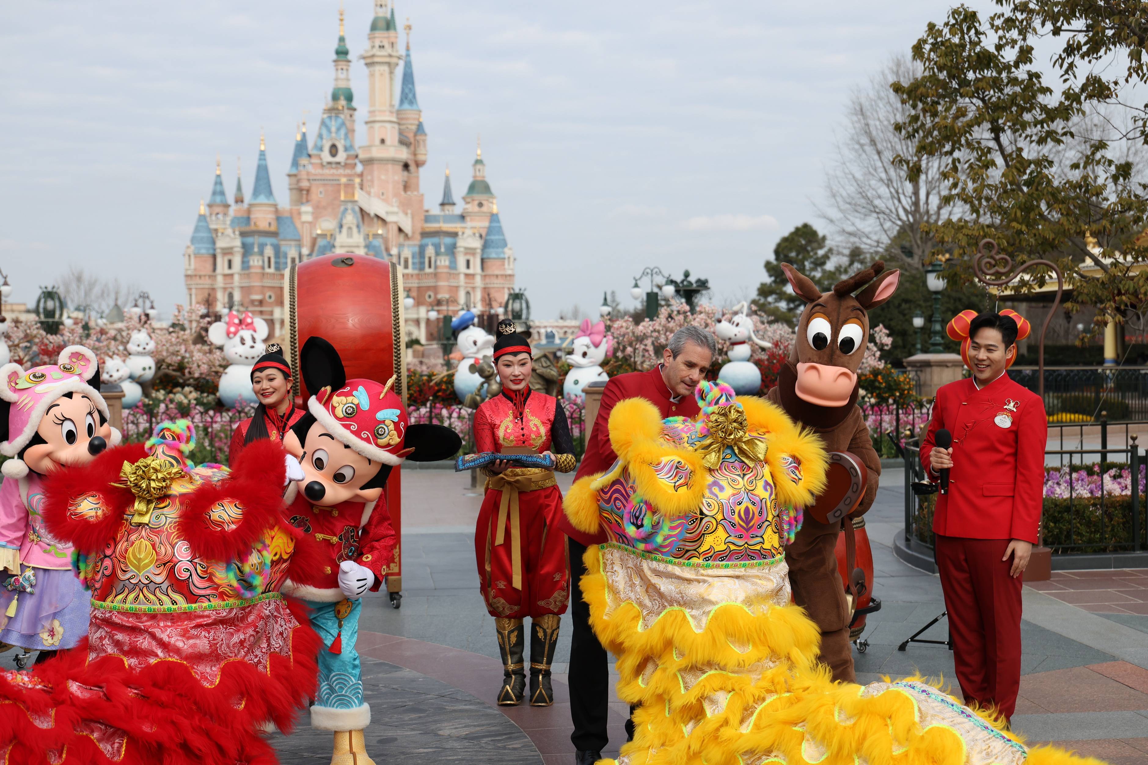 今日是正月初一,上海迪士尼度假区以一场寄意吉利的中国保守瑞狮点睛典礼欢庆马年新春的到来,恭祝旅客取演职人员正在新的一年福运绵长、喜乐常伴。值此马年伊始,这一保守新春典礼还送来了一位出格的迪士尼伴侣——来自迪士尼·皮克斯《玩具总带动》系列中深受喜爱的小马红心欣喜现身,取身着新春节日盛拆的米奇和米妮一同欢庆佳节。上海迪士尼度假区总裁及总司理包兆天(Andrew Bolstein)和米奇一路为两只瑞狮点睛,传送好运连连的夸姣祝愿,为旅客营制热闹欢娱的节日空气取难忘的迪士尼奇异体验。
